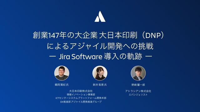 本ウェビナーでは、大企業によるアジャイルへの挑戦について、大日本印刷(DNP)より、同社のアジャイル開発推進グループの鶴岡氏と新井氏をお招きし、アジャイルなプロダクト開発を始められた経緯や現状の課題、そして真のアジャイルを組織に根付かせるための取り組みについて、アトラシアンのエバンジェリストがお話を伺いました。