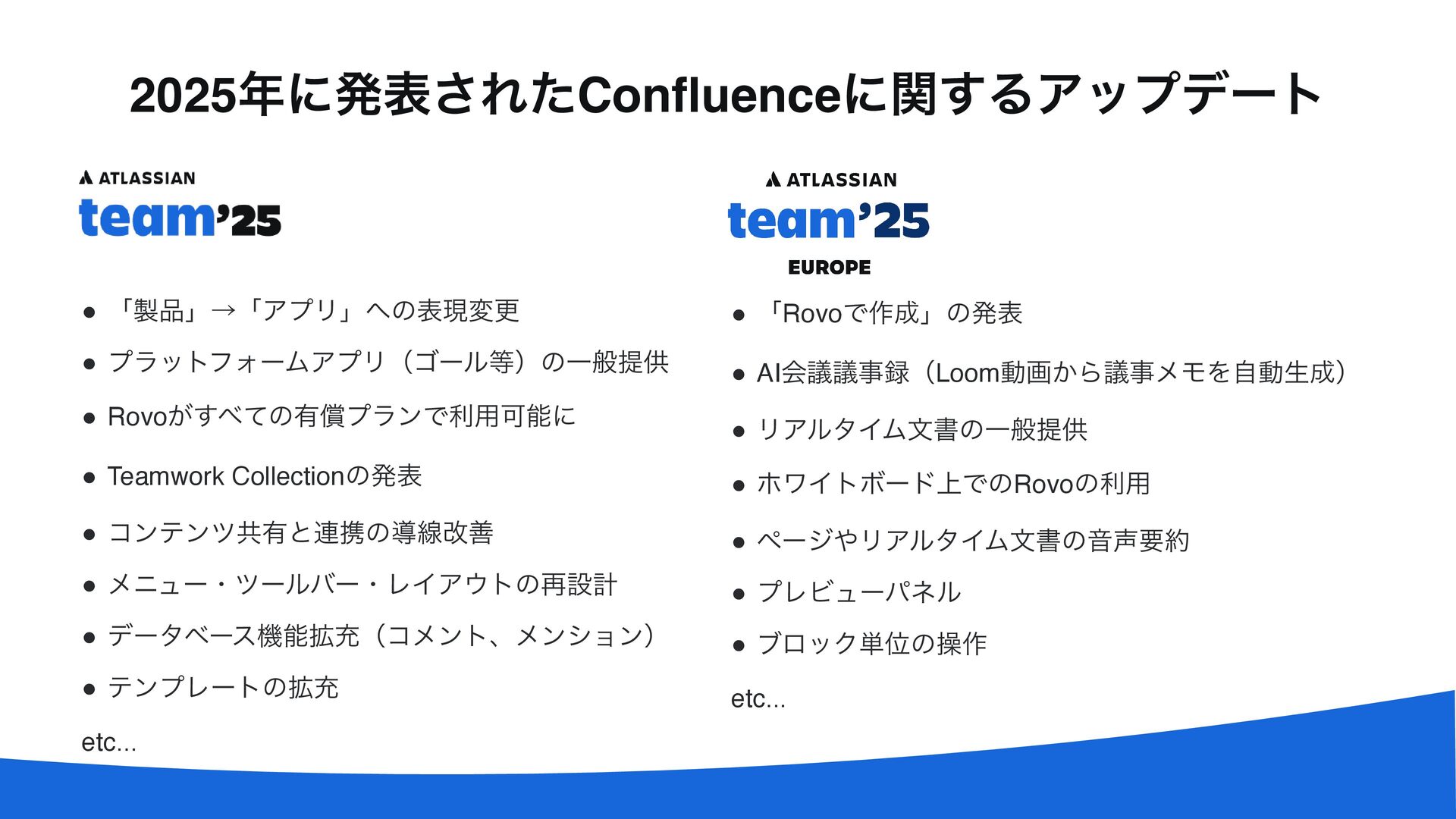 026年 2月10日(火)に実施されたアトラシアン主催のWebセミナー『Confluence最前線:Wikiツールを超えてチームのナレッジハブへ』で使用されたスライドです。