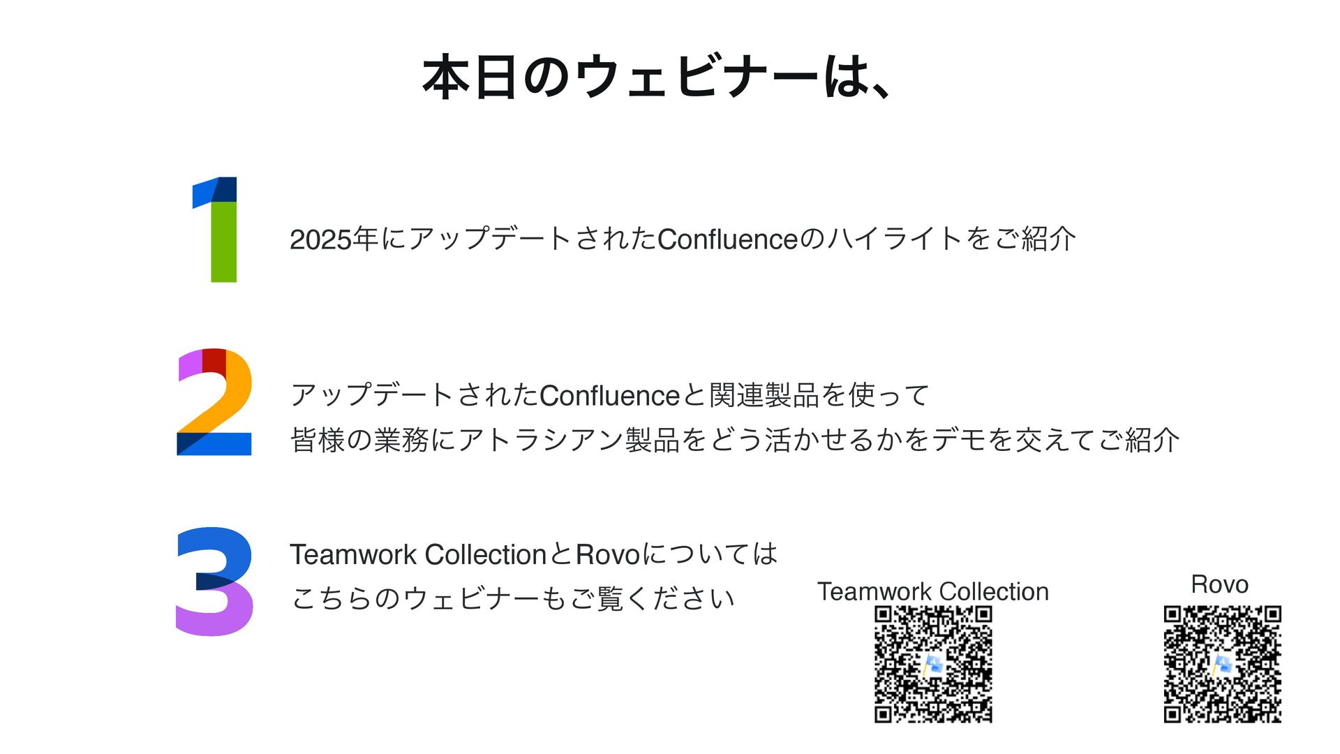 本ウェビナーでは、Confluence最新アップデートと代表的な機能の活かし方をコンパクトに紹介し、情報共有・ナレッジ管理・チームコラボレーションの質を高めるためのヒントをお届けいたします。