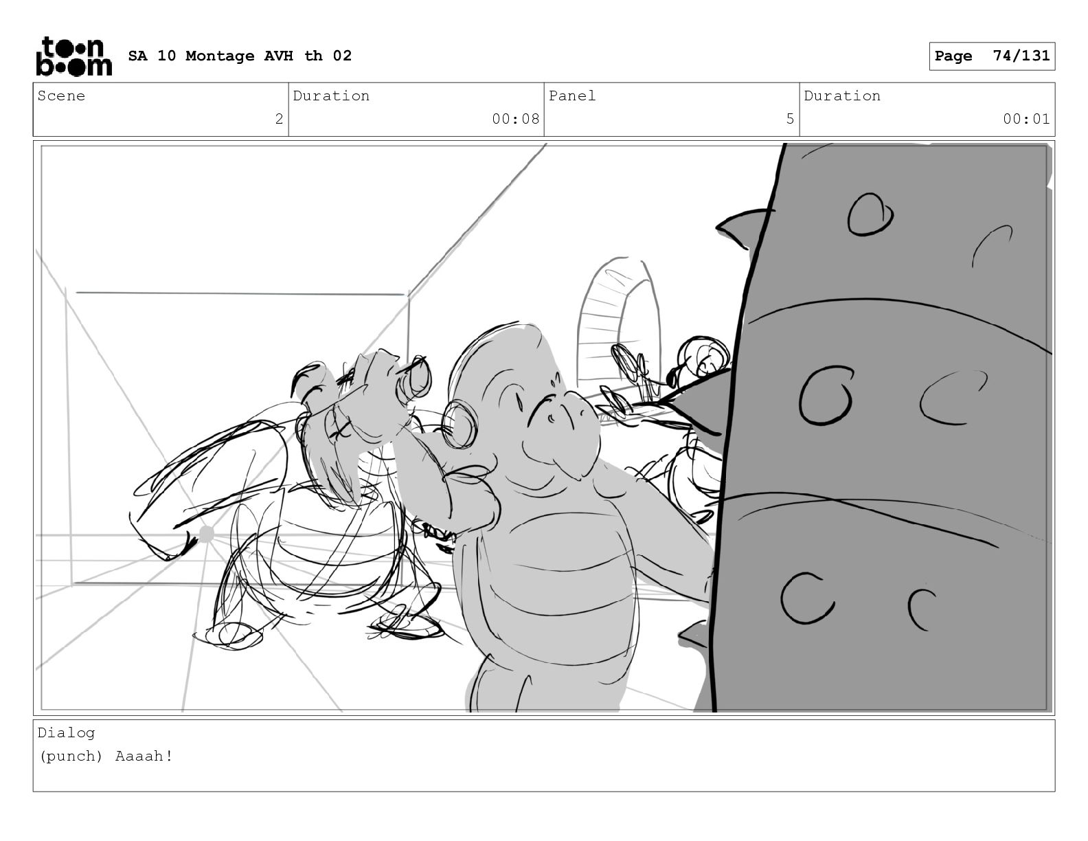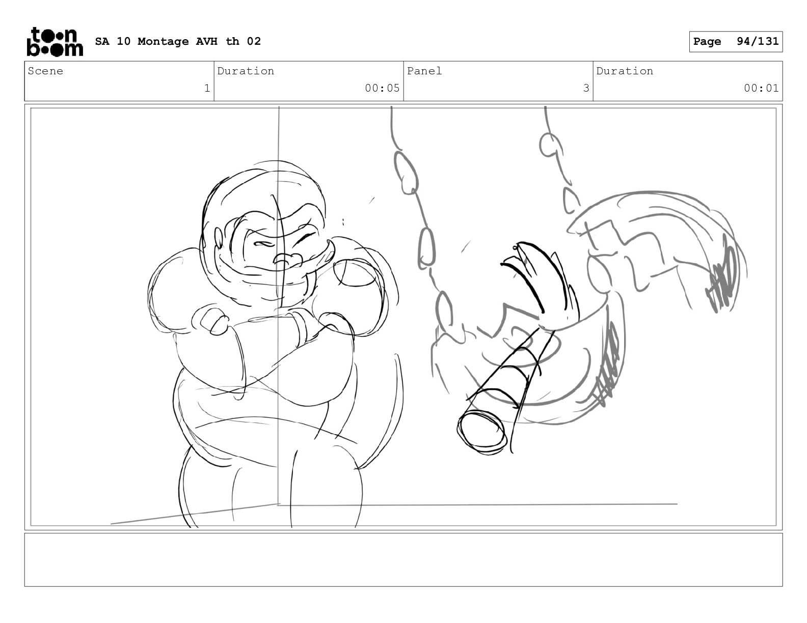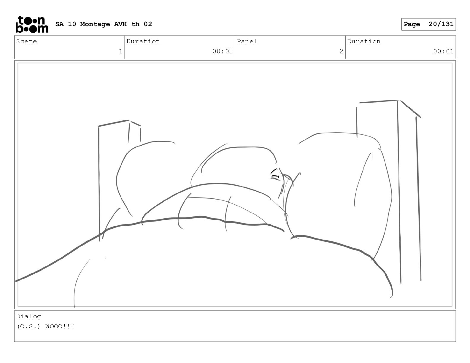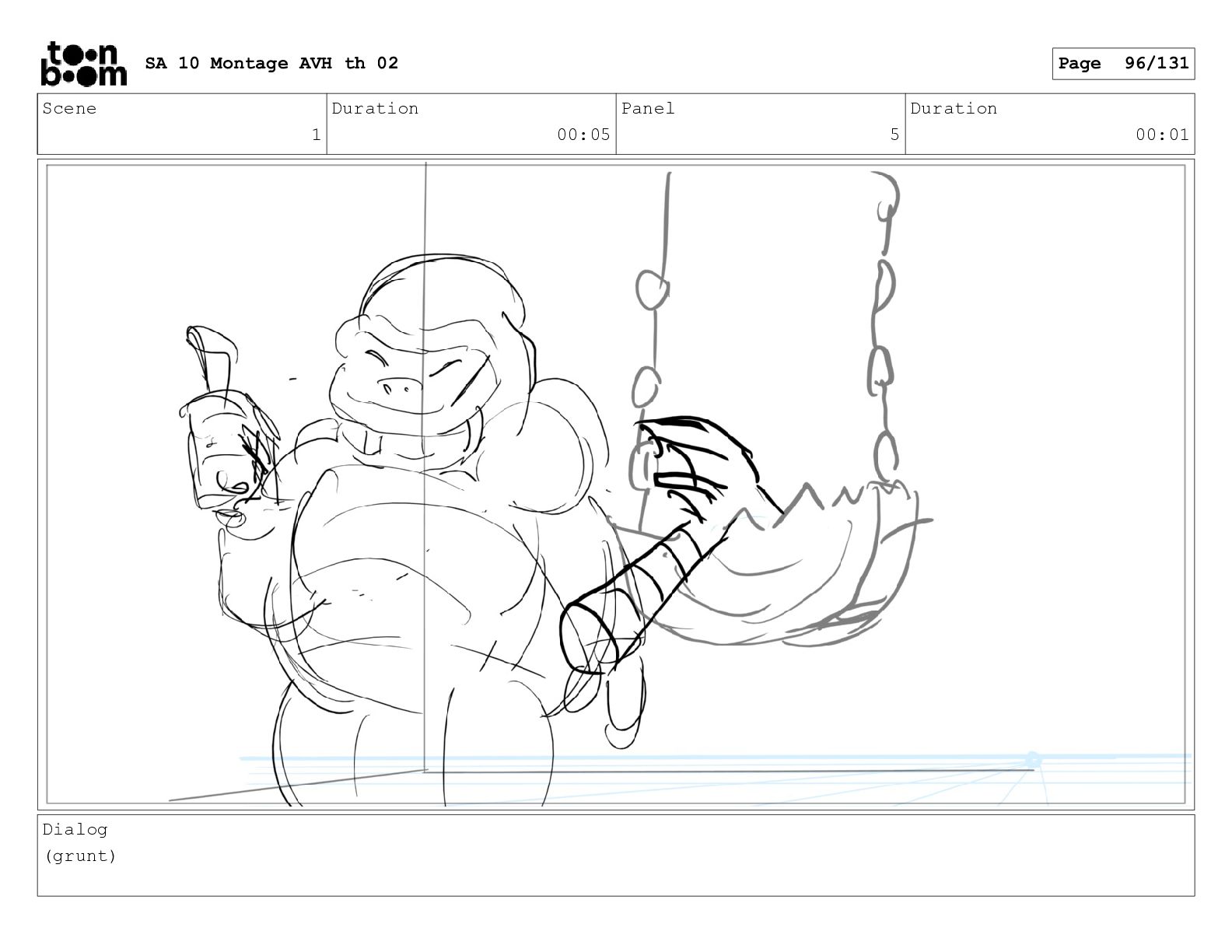 Scene 1 Duration 00:05 Panel 5 Duration 00:01 Dialog (grunt)