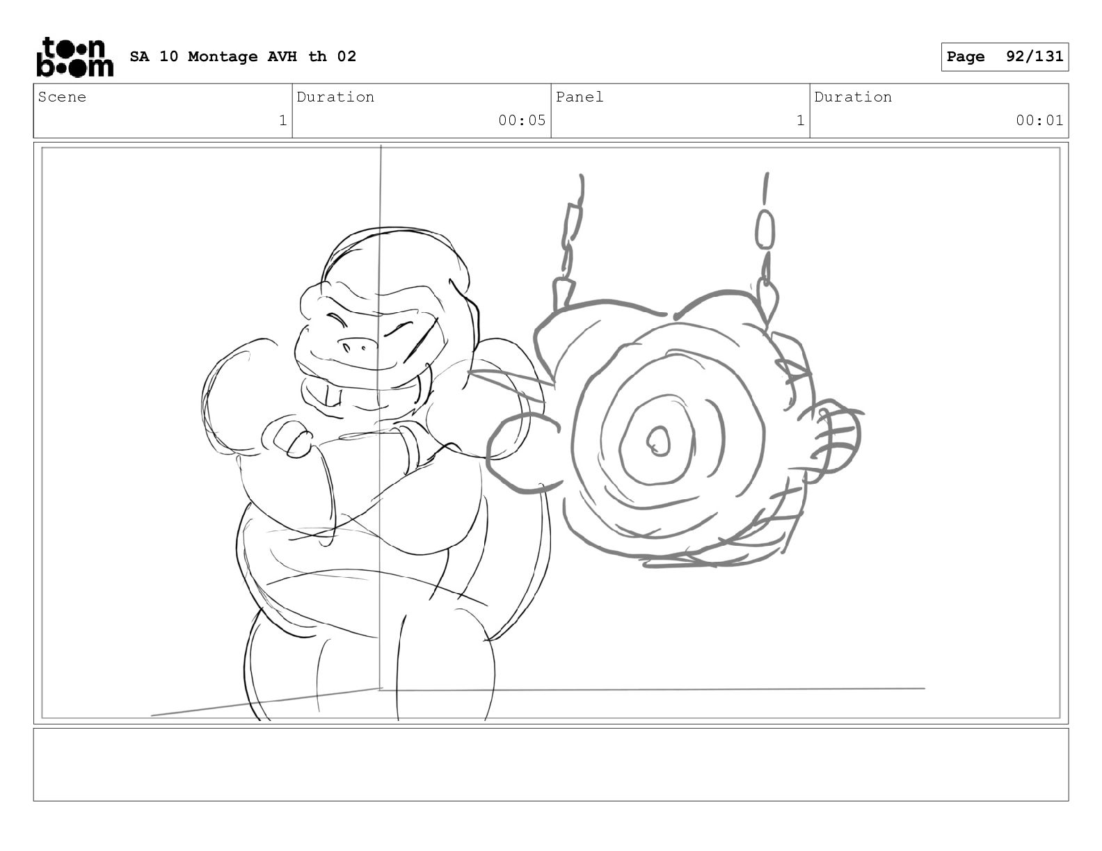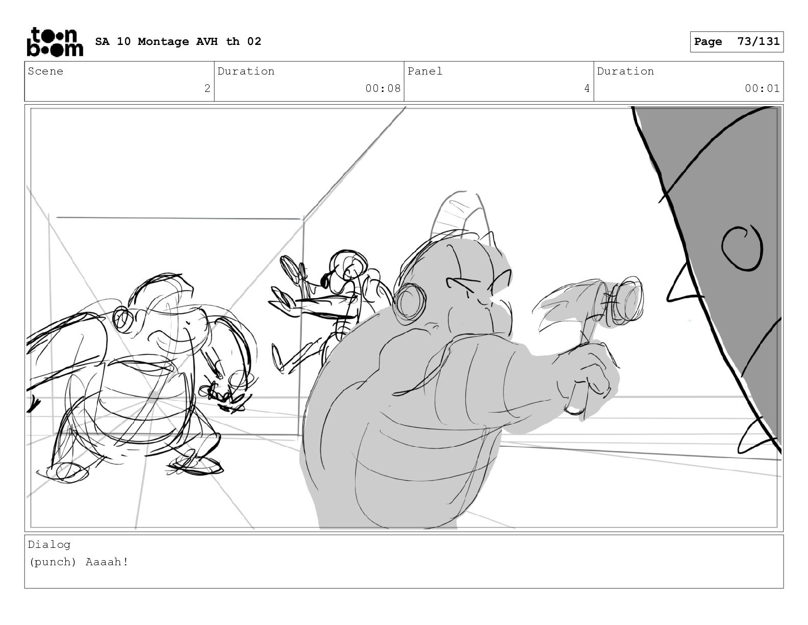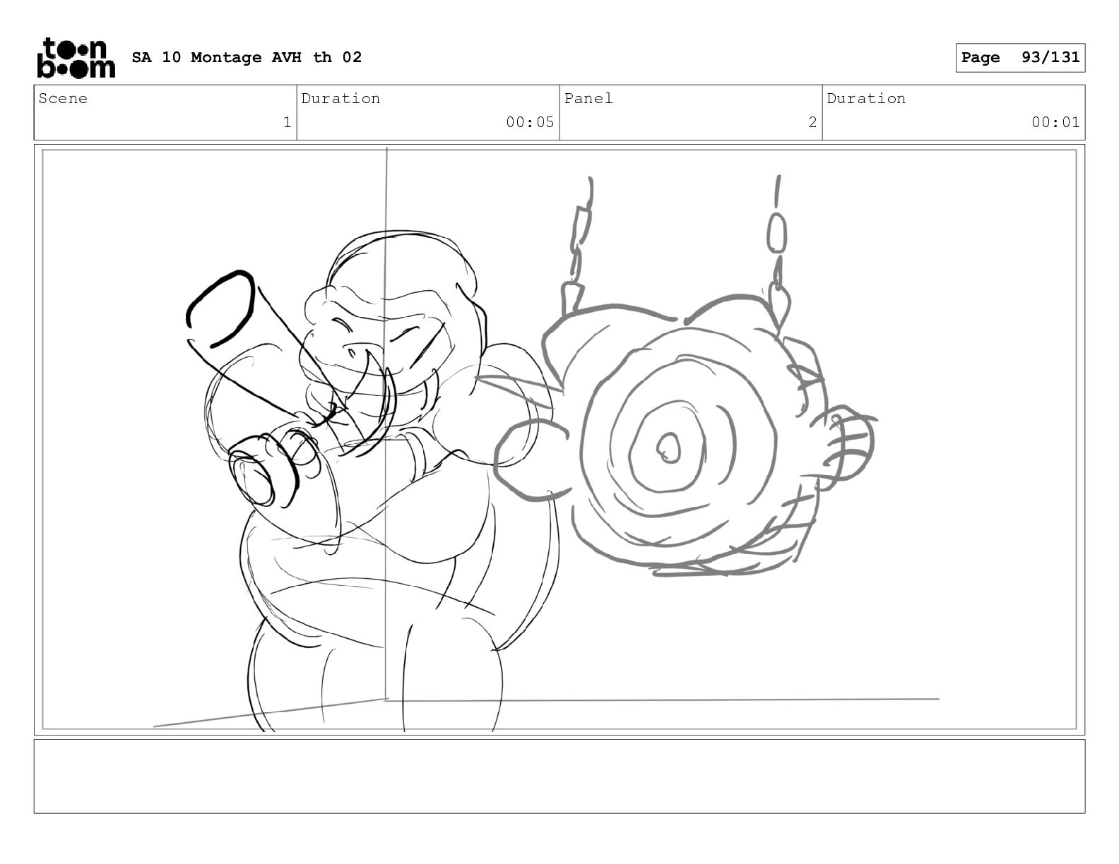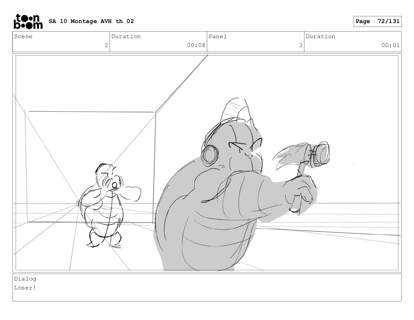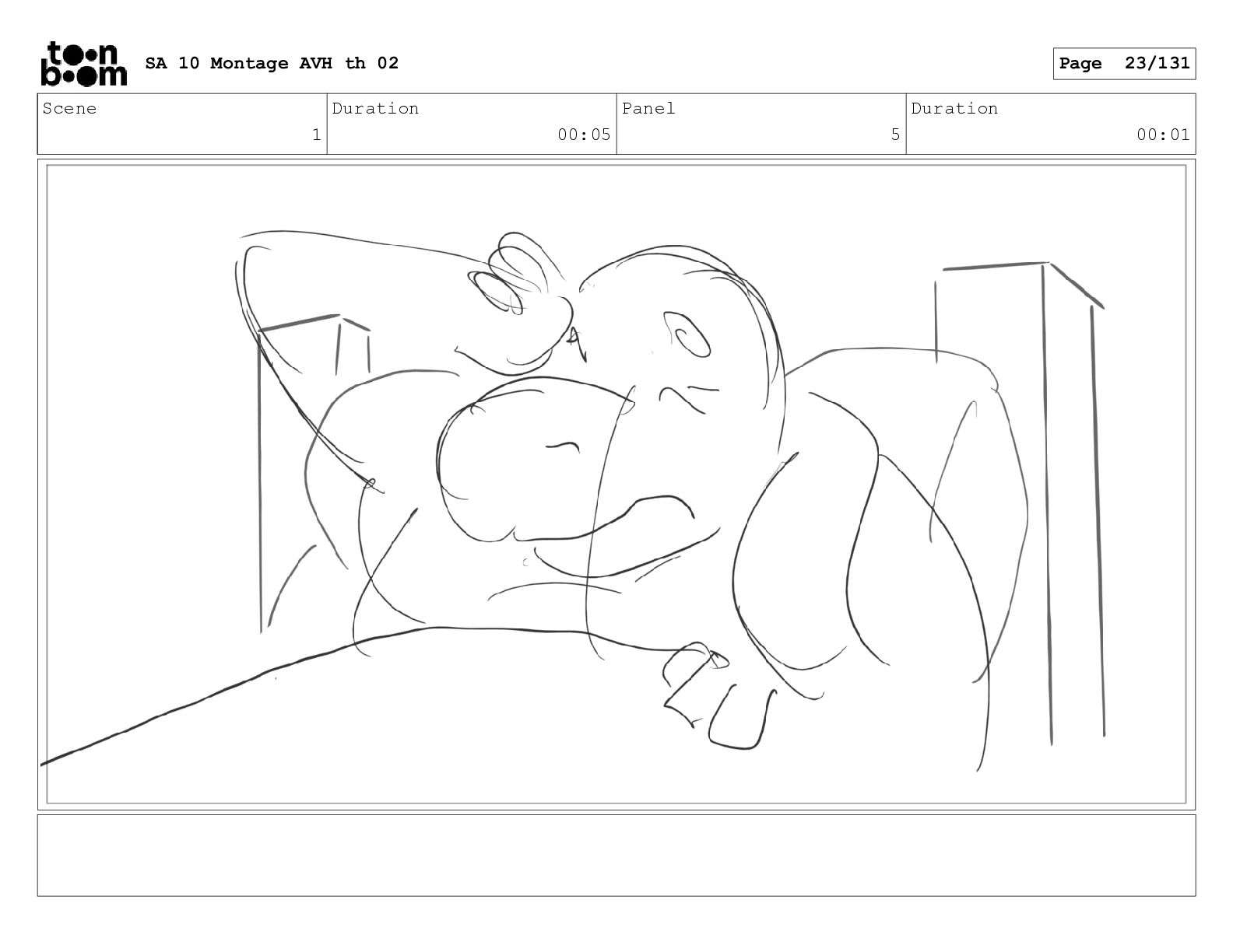 Scene 1 Duration 00:05 Panel 5 Duration 00:01 Dialog (grunt)