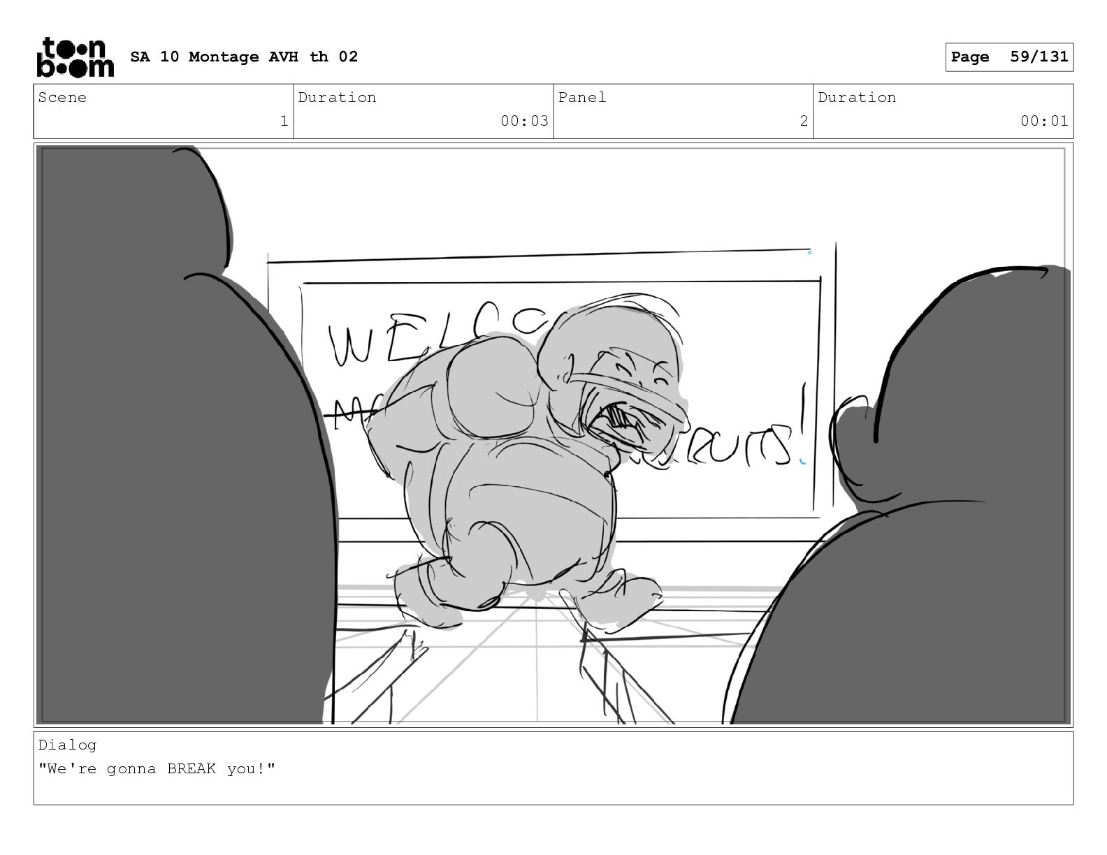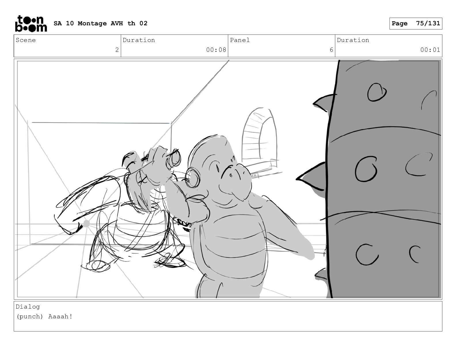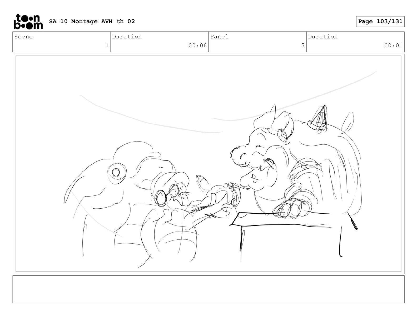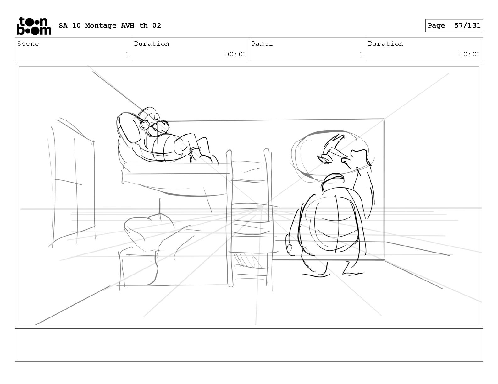 Scene 1 Duration 00:05 Panel 5 Duration 00:01 Dialog (grunt)
