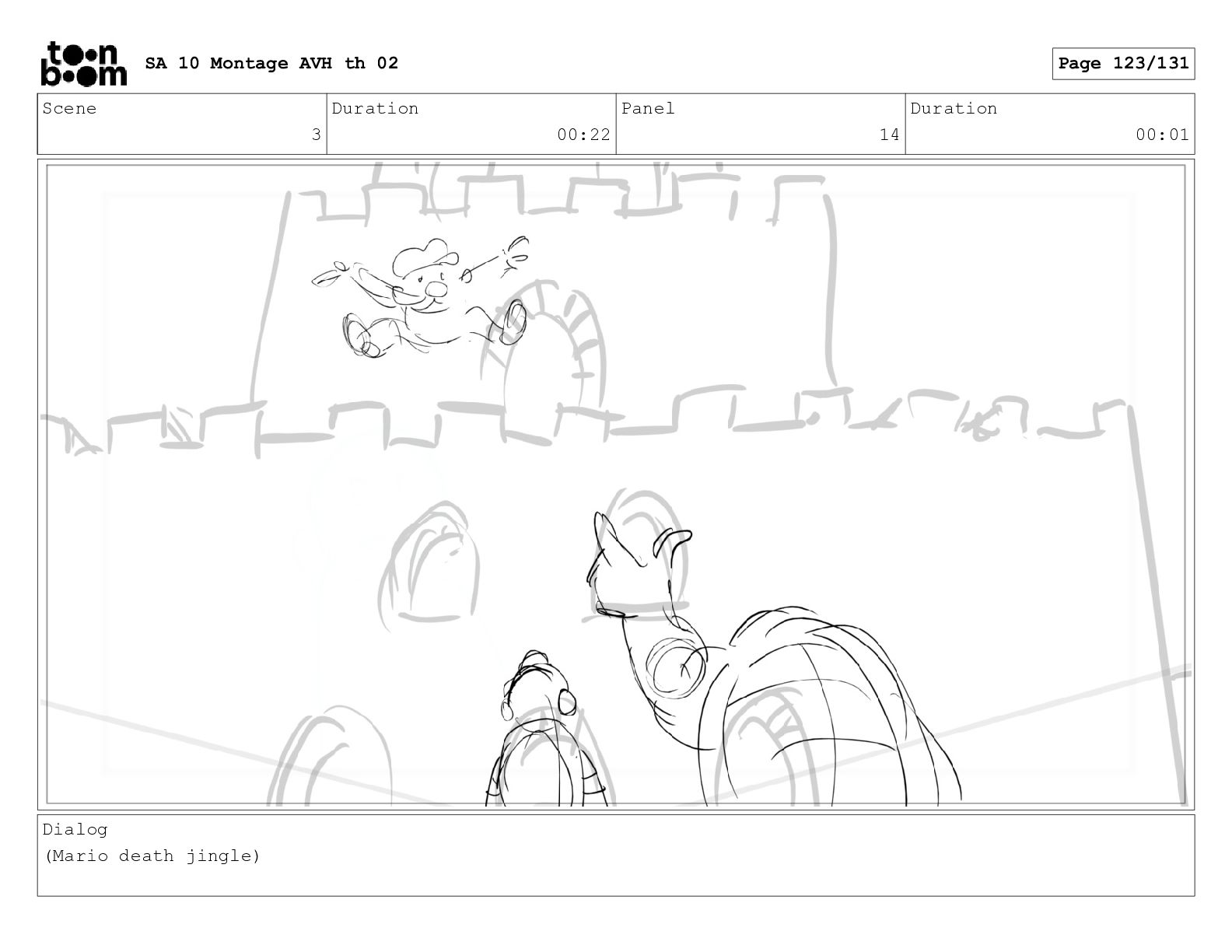 Scene 3 Duration 00:22 Panel 14 Duration 00:01 Dialog (Mario