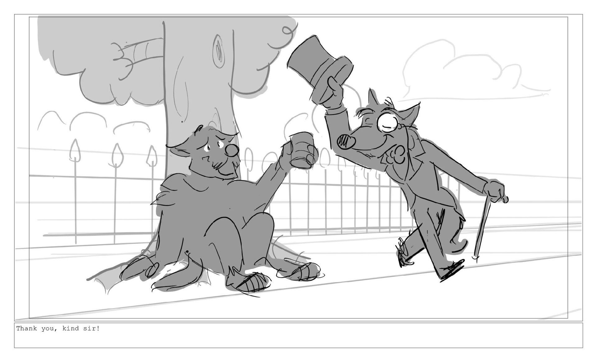 A wolf bum's luck finally turns around when a bag of money falls in front of him. However, will his new riches give him the standing in society that he wants?