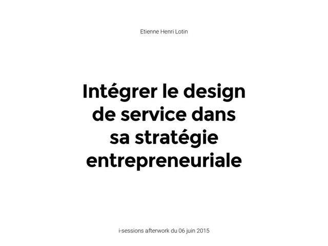 Cette intervention se situe dans le cadre du business talk des i-Sessions Afterwork du 06 juin 2015. Comment tirer profit du design de service pour améliorer les perfomances de son entreprise ?