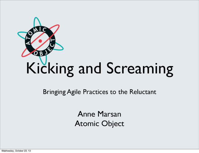 Despite the amount of attention that has been given in recent years to Agile project management methodologies, many of the clients that Atomic Object (formerly SRT Solutions) have worked with have not yet adopted these practices and view them with skepticism. In this talk we will discuss some of the common reasons why clients are reluctant to adopt Agile and techniques that we have used to introduce them. We will describe many real-world situations and experiences and how we worked with our customers to successfully manage complex projects.