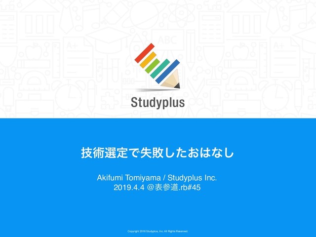 Copyright 2018 Studyplus, Inc. All Rights Reserved. ٕज़બఆͰࣦഊ͓ͨ͠ͳ͠ Akifumi Tomiyama