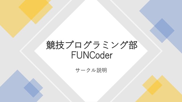 2020年度公立はこだて未来大学競技プログラミング部FUNCoderのオンラインサークル説明用スライドです。 --- 代表Twitter -> @AtriaSoft 入部申請フォーム -> https://forms.gle/V1aJGVt6776NsjGM6