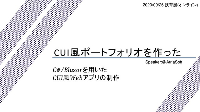 2020/09/29(土) サポーターズ主催テックカンファレンス "技育展" 無駄開発部門 発表資料 技育展公式HP -> https://talent.supporterz.jp/geekten/2020/ 作ったポートフォリオ -> https://atria64.github.io/CUIPortfolio/