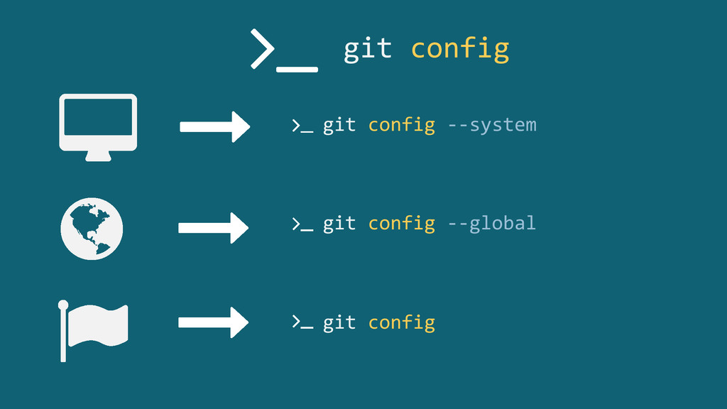 --global alias.<alias> <command> git config --system core.editor <editor.executable> git config --edit