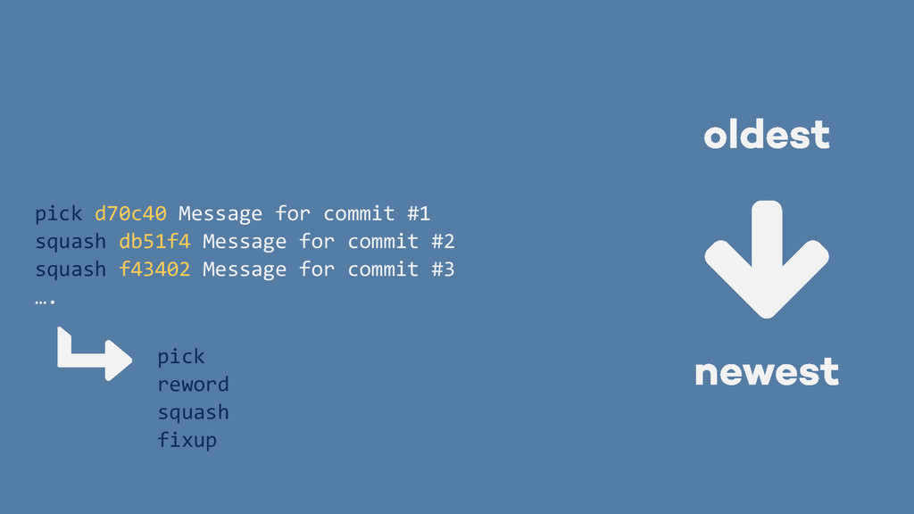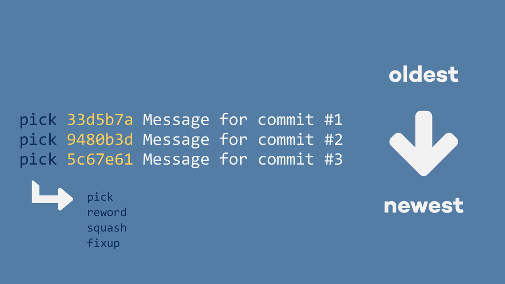 commit #2 pick 5c67e61 Message for commit #3 pick reword squash fixup