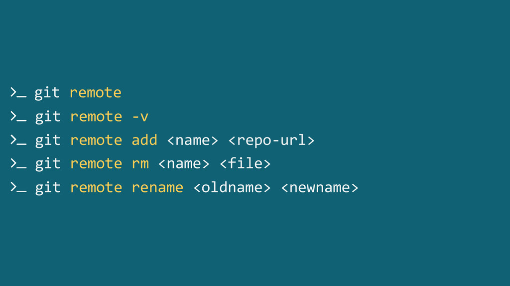 git remote rm <name> <file> git remote rename <oldname> <newname>