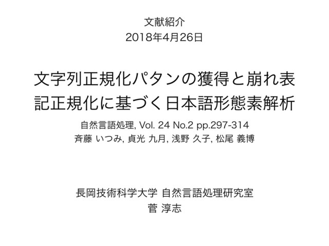 จࣈྻਖ਼نԽύλϯͷ֫ಘͱ่Εද هਖ਼نԽʹجͮ͘ຊޠܗଶૉղੳ Ԭٕज़Պֶେֶࣗવݴޠॲཧݚڀࣨ ੁ३ࢤ จݙհ ݄ ࣗવݴޠॲཧ 7PM/PQQ ੪౻͍ͭΈ ఃޫ݄