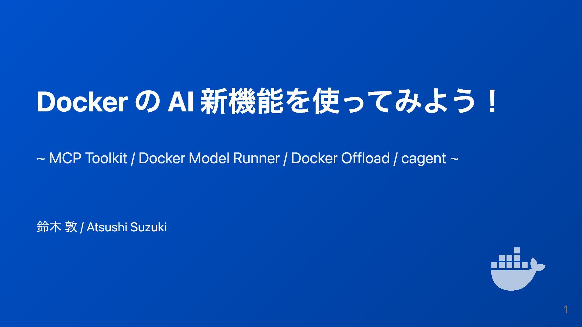 Model Runner / Docker Offload / cagent ~ 鈴木 敦 / Atsushi Suzuki