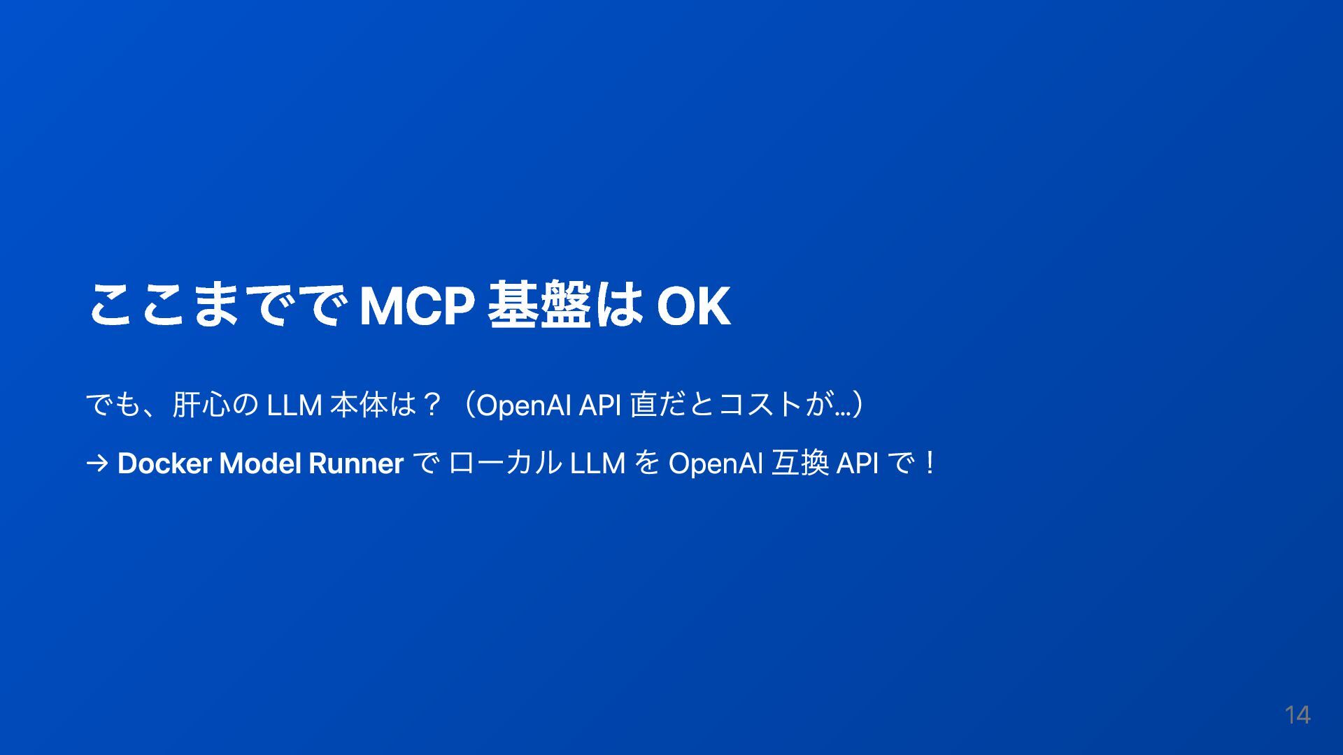 14 ここまでで MCP 基盤は OK でも、肝心の LLM 本体は?(OpenAI API 直だとコストが…)