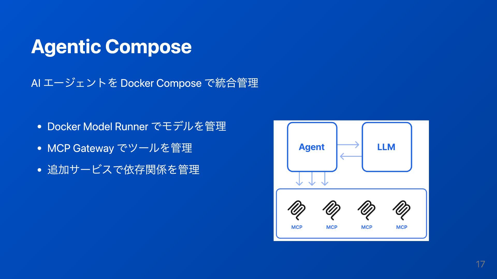 17 Agentic Compose AI エージェントを Docker Compose で統合管理 Docker Model