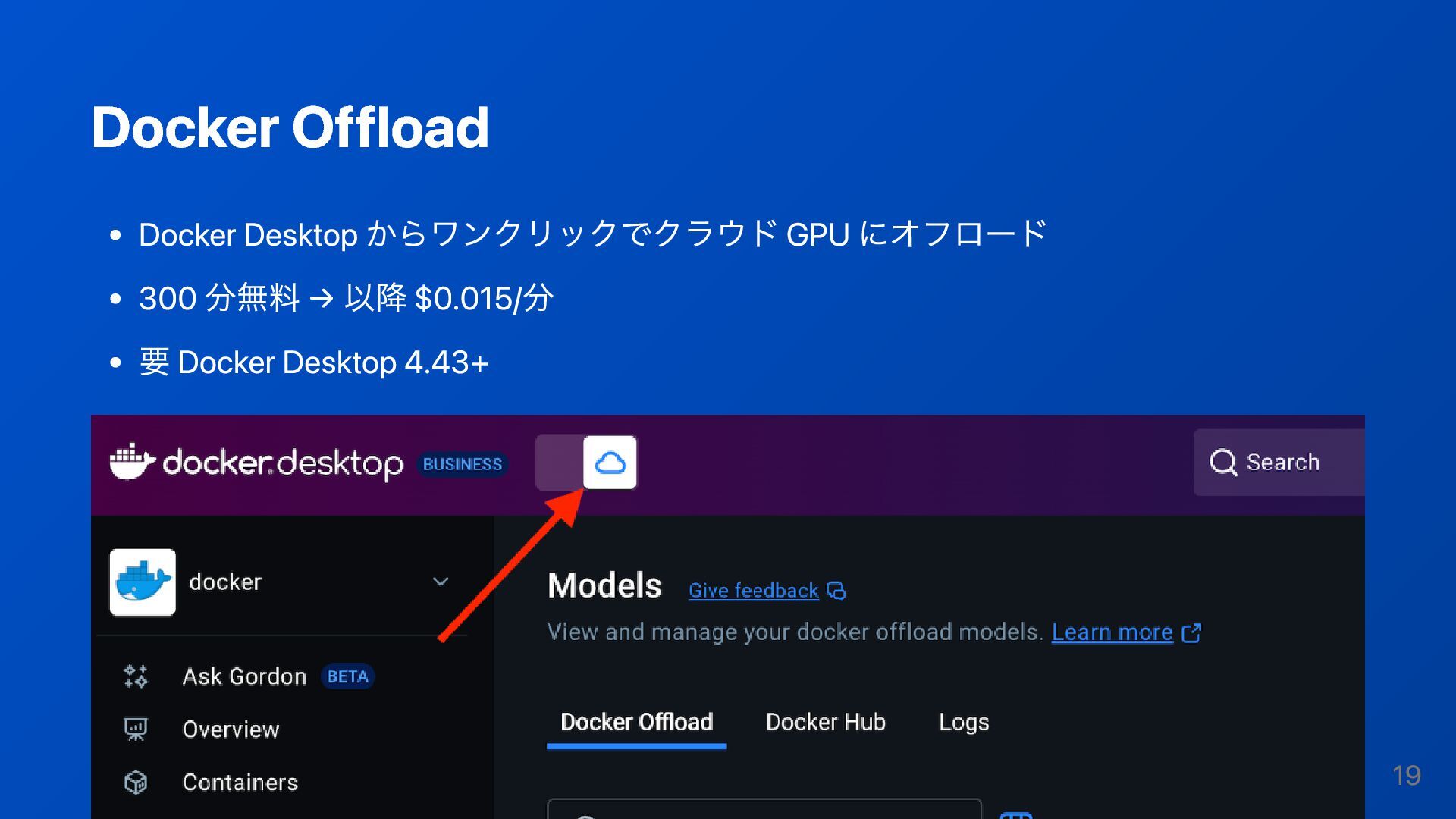 19 Docker Offload Docker Desktop からワンクリックでクラウド GPU にオフロード 300 分無料