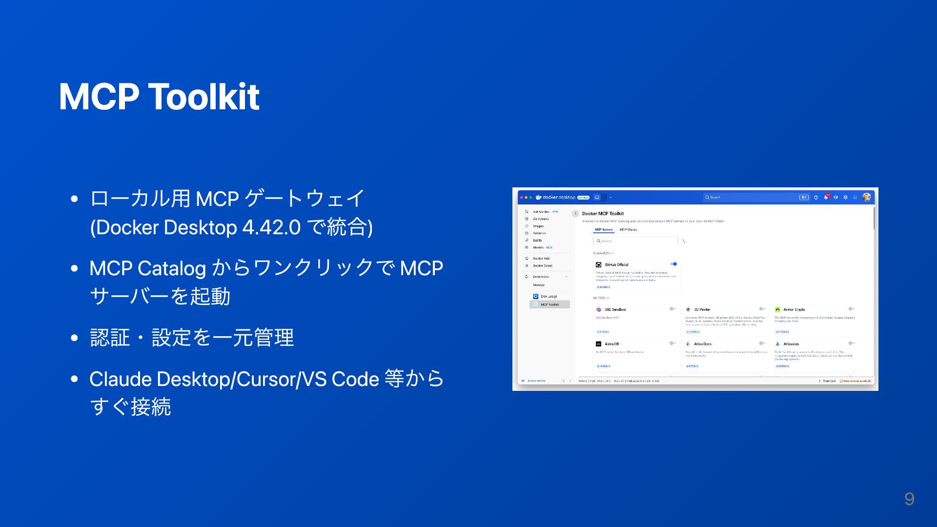 9 MCP Toolkit ローカル用 MCP ゲートウェイ (Docker Desktop 4.42.0 で統合)