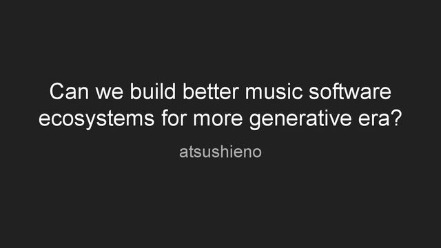 formats: VST3, AudioUnit, LV2, CLAP, etc. ◦ none of them are ideal (yet) • DAW project files are not portable ◦ and DAWs aren't solely faulty • At the moment, we only share the rendered production (mp3, flac, ogg, etc.) There should be more generative music software ecosystem mp3, ogg, flac mp3, ogg, flac mp3, ogg, flac project files project files Not Useful