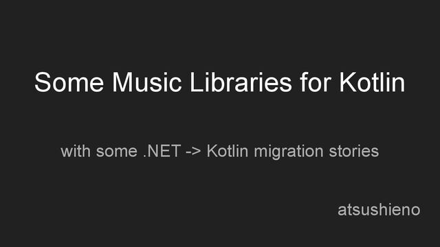 compiler https://github.com/atsushieno/augene-ng - ... to DAW XML project compiler https://github.com/atsushieno/missing-dot - .NET XML API ports https://github.com/atsushieno/compose-audio-controls/ - audio controls in KMP https://github.com/atsushieno/kmdsp/ - visual MIDI player in KMP