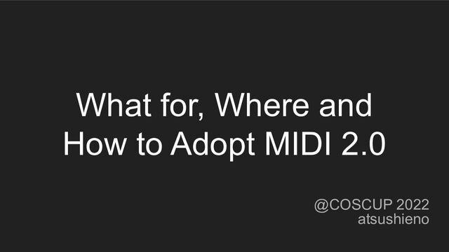 iOS, and Android (USB-MIDI 2.0 only) "Where can I buy MIDI 2.0 ?" (devices) Roland A-88MkII ? Erae Touch ? If there is no MIDI 2.0 device yet, can we even use it? → still YES in theory (source)