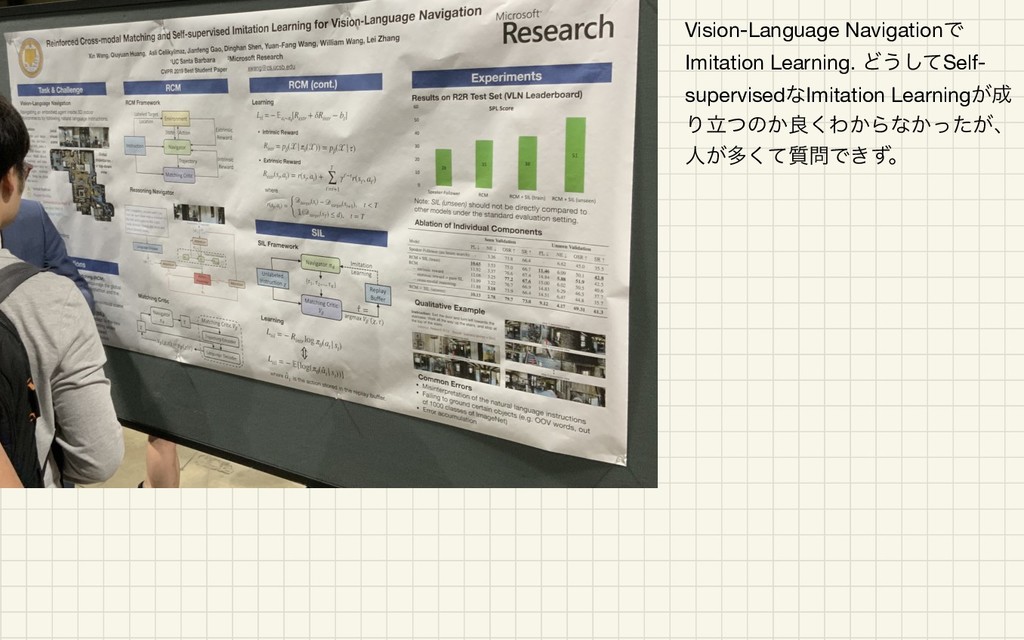 Vision-Language NavigationͰ Imitation Learning. Ͳ͏ͯ͠Self- supervisedͳImitation Learning͕ Γཱͭͷ͔ྑ͘Θ͔Βͳ͔͕ͬͨɺ ਓ͕ଟ࣭ͯ͘Ͱ͖ͣɻ
