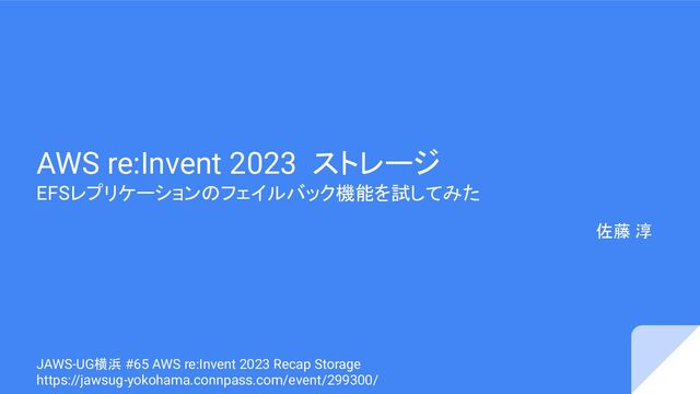 AWS re:Invent 2023 ストレージ EFSレプリケーションのフェイルバック機能を試してみた 佐藤 淳 JAWS-UG横浜 #65 AWS