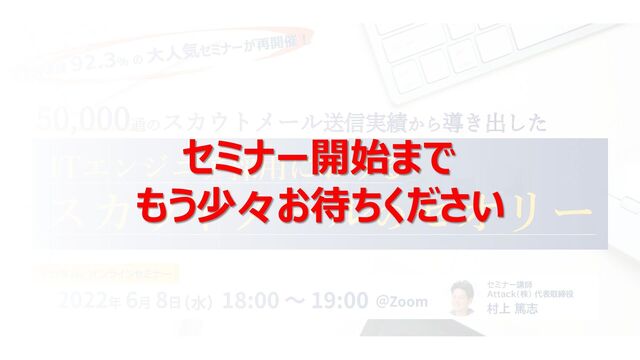 エントリーいただいた方に、セミナーURLをお伝えします。