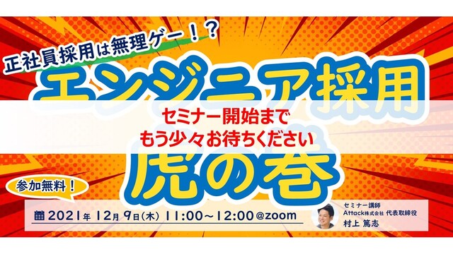 本セミナーでは多くの企業様においてITエンジニアの採用支援を行ってきたAttack株式会社がその経験から、エンジニア採用を成功させるためのテクニックやノウハウを惜しみなくお話しさせていただきます。
