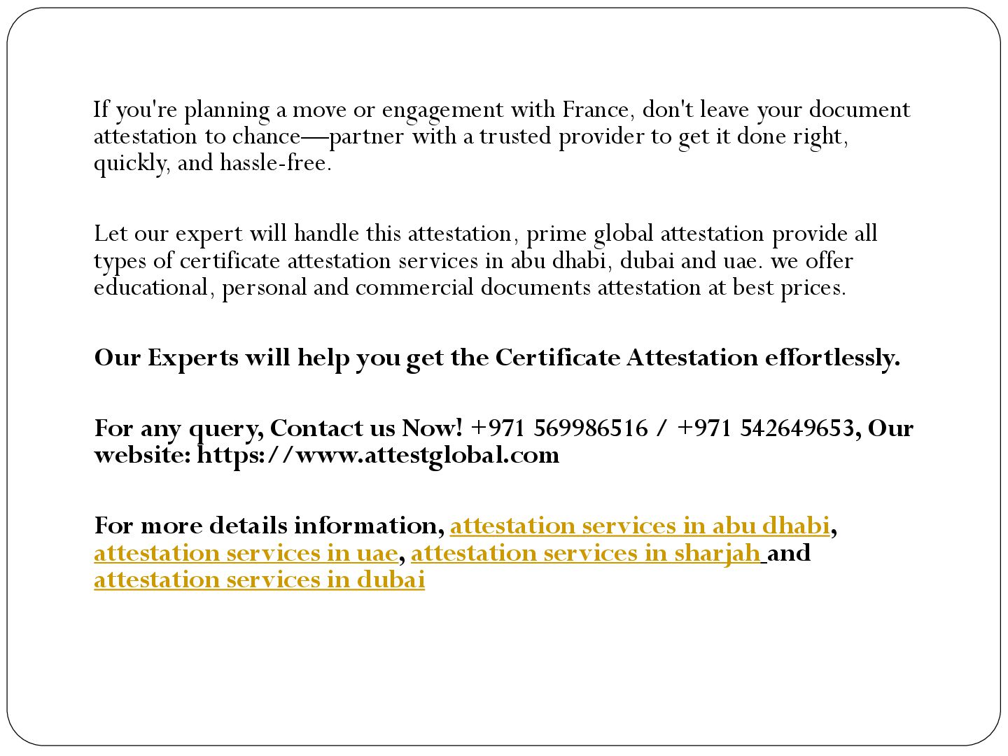 Prime Global is your trusted partner for all your document attestation needs in Abu Dhabi, dubai and uae. We offer reliable, fast, and affordable attestation services for educational, personal, and commercial documents. Our expert team ensures your documents are legally recognized and accepted by UAE authorities. Attestation like educational certificate, non educational certificate, commercial certificate attestation with best price with free pickup and delivery within uae. We handle attestations for documents from over 135+ countries, including the UK, USA, Canada, Australia, India, and the UAE. Enjoy the convenience of our free pickup and delivery service within the UAE.