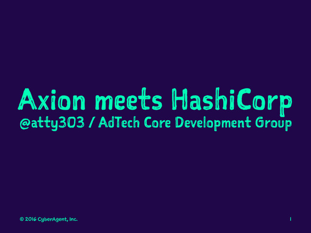 { "Node": "acd-stg-axion-kafka-y001.local", "Address": "192.168.0.19", "ServiceID": "kafka", "ServiceName": "kafka", "ServiceTags": [], "ServiceAddress": "", "ServicePort": 9092, "ServiceEnableTagOverride": false, "CreateIndex": 55508, "ModifyIndex": 151479 }, ... ] © 2016 CyberAgent, Inc. 18