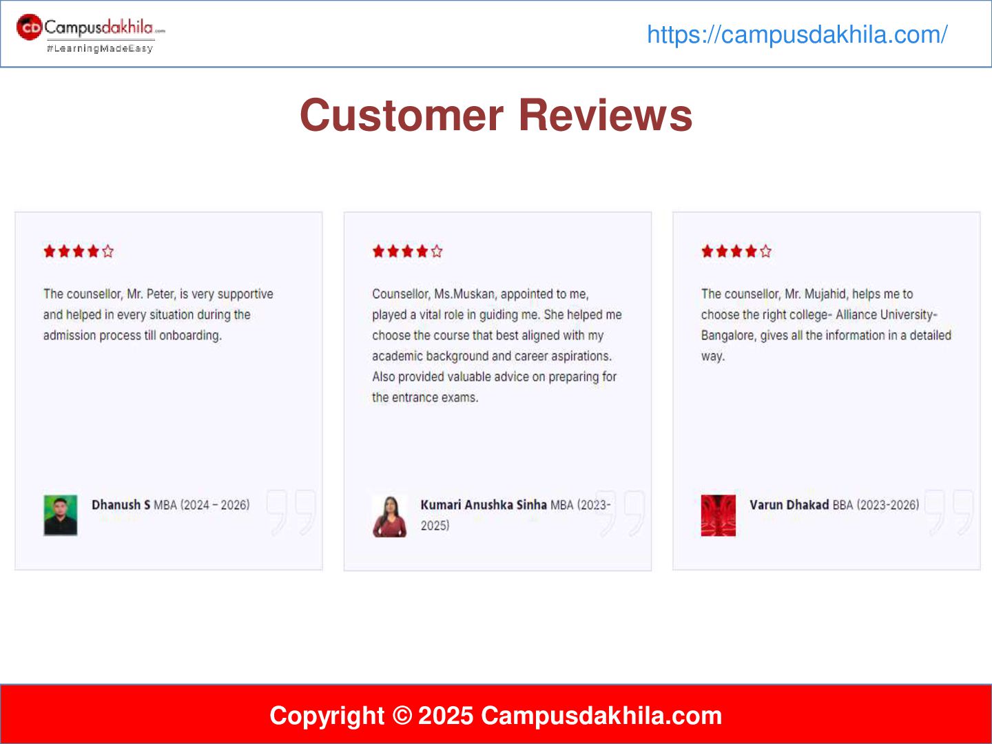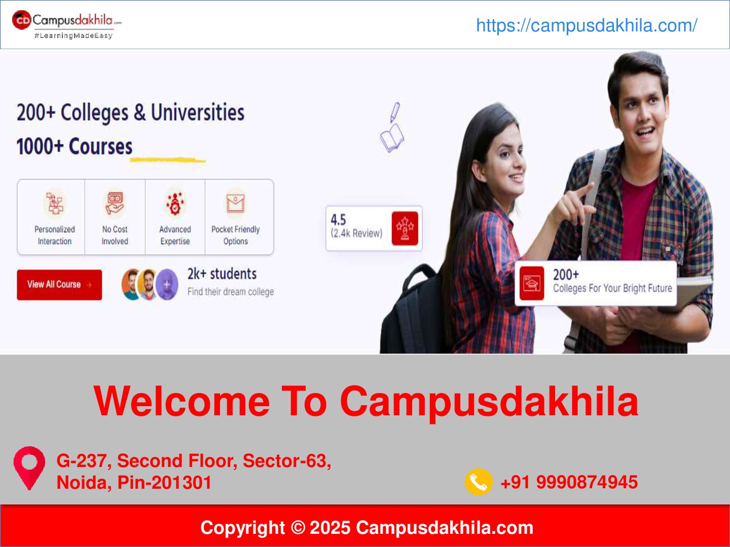 education portal serving all your academic needs in one place. We help students in choosing the right college by providing accurate information. Whether you prefer the dynamic environment of a traditional classroom or the flexibility of online learning, we fulfill your need. Our online portal has a dedicated section that enables you to go through the list of the top colleges all over India. Our aim is to simplify and streamline the process of selecting a college. We are proud of our large library, which has information on the best colleges & universities. Thousands of students trust our site because it is reliable and has a lot of information. Our team of experienced counsellors are always ready to help you make smart choices about your future education. As part of our personalised counselling services, we'll help you find the best path that fits your academic and job goals. https://campusdakhila.com/