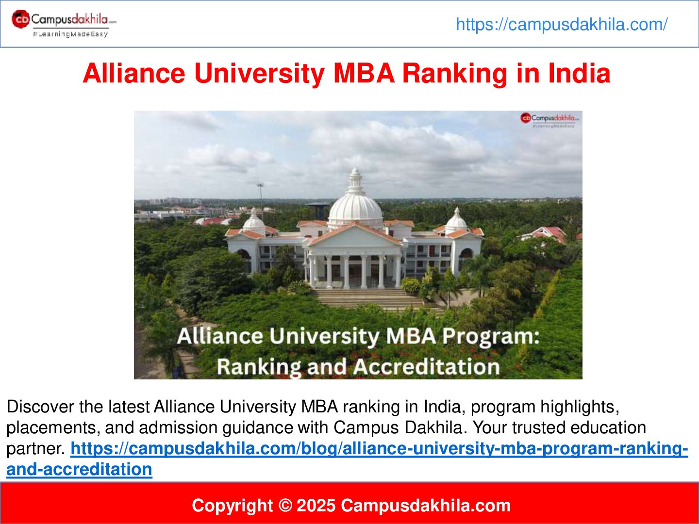 https://campusdakhila.com/ Discover the latest Alliance University MBA ranking in India, program highlights, placements, and admission guidance with Campus Dakhila. Your trusted education partner. https://campusdakhila.com/blog/alliance-university-mba-program-ranking- and-accreditation