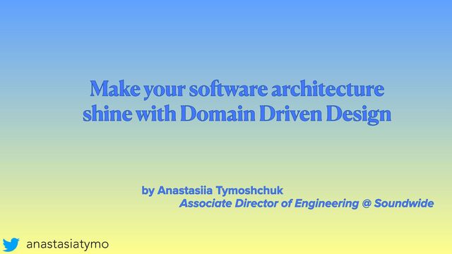 Domain Driven Design (DDD) has a huge set of tools, which could be used to design your perfect architecture - loosely coupled and highly cohesive. Anastasiia started using DDD since a few years already and created her own way to design a new architecture for a product, a feature, redesign, refactoring and also for exploring existing products, their ecosystem and their functionality.