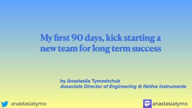 Anastasiia will share what she learned from using the classic first 90 day strategy and how she adapted it to work even better for software engineering teams.