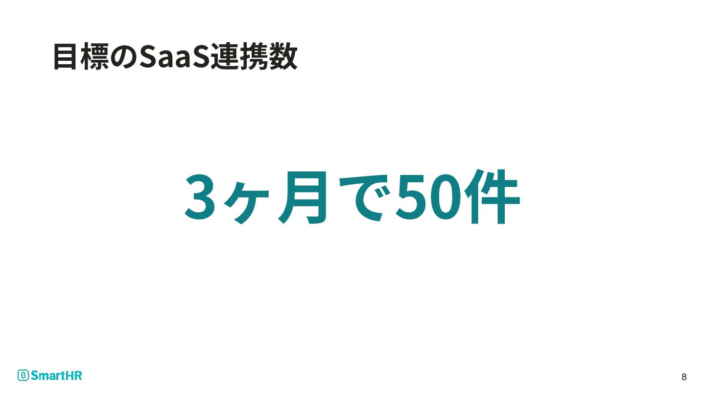 ⽬標のSaaS連携数 8 3ヶ⽉で50件
