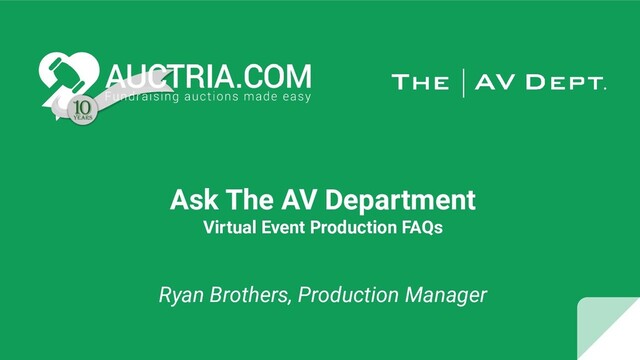 event: ◦ Promote auction packages during the pre-show ◦ Incorporate slides and videos for select auction items ◦ Create excitement and highlight bidding that’s already happening ◦ Multiple monitors allow the auctioneer to view bidding and donations simultaneously ▪ Pro tip: To host a LIVE auction, remember internet speeds and connections vary. One alternative is to announce the item will close at a specific time (i.e. 7:15pm PDT).