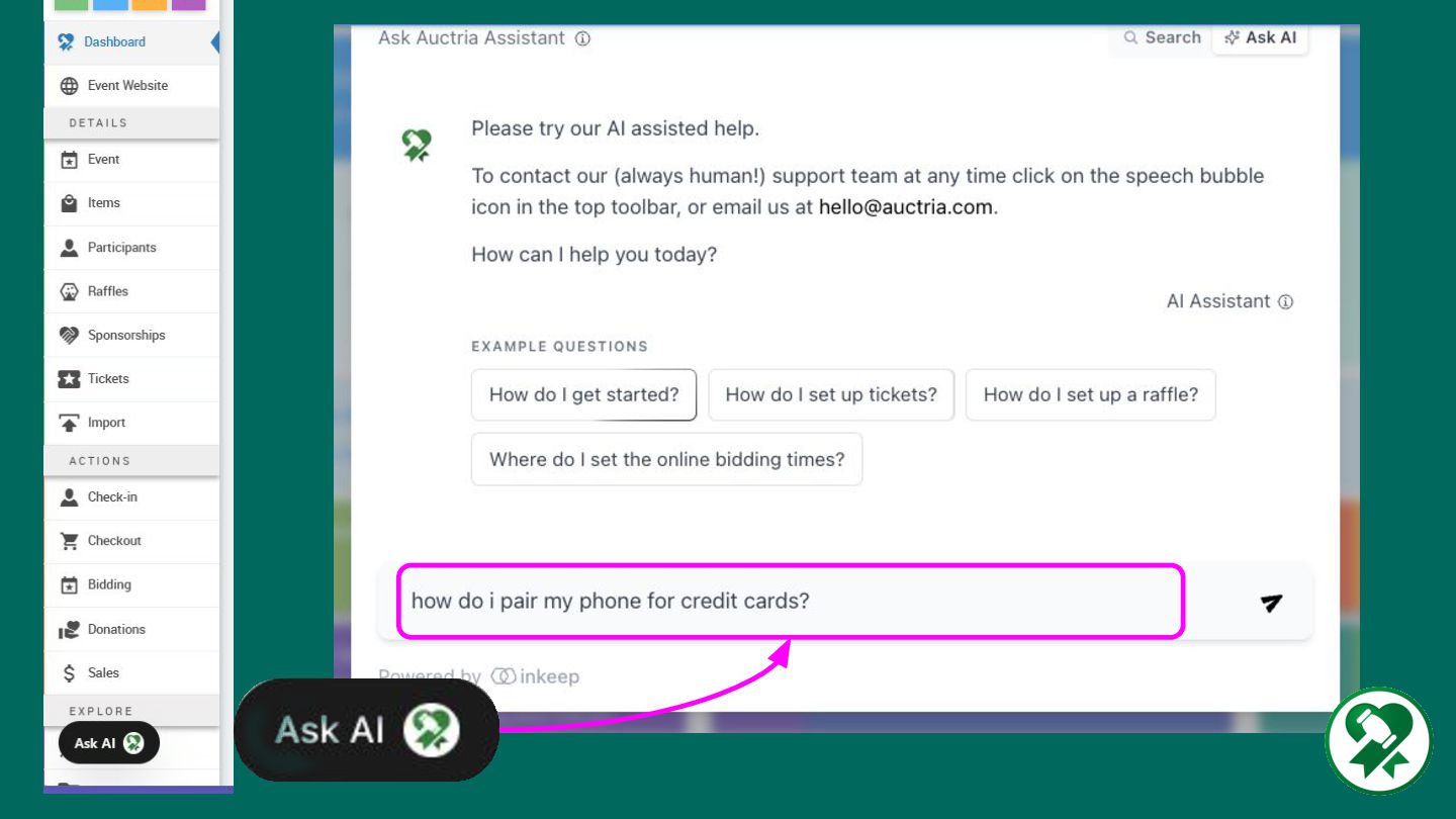 Search + Ask AI Help on Repeat Auctria Academy