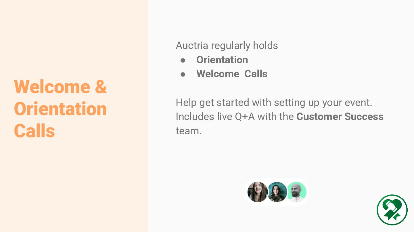 Auctria regularly holds • Orientation • Welcome Calls Help get