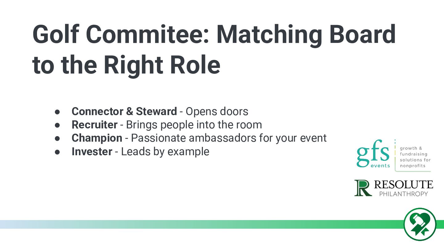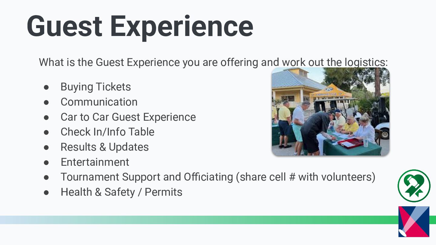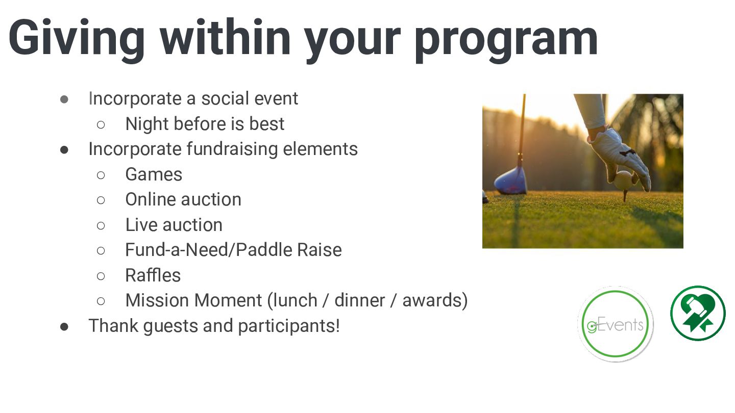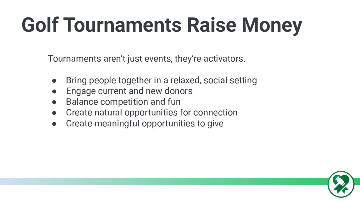 for your audience (National Anthem, Opening Prayer, etc.) • Talk about/Share Mission - Why are we here? Where are your dollars going? • Host to introduce the day and share announcements throughout tournament. Introduce flow of the day and announce participant activities and resources. Introduce guest activities available. Sell Merch. • Break for F & B, rest period. Setting the Program