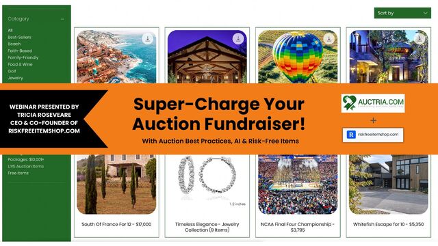 +/- above the charity cost. Setting a higher price raises the perceived value and increases the interest for the item, and it builds in a profit margin for you. A pricing guide is provided in the marketing materials for each item in our shop. Strategic Pricing For Success For Risk-Free Items Charity Cost: $2,595 Starting Bid: $3,114 (20% over) Bid Increments of $150 Fairmont Scottsdale Golf For 2 Charity Cost: $895 Starting Bid: $1,395 ($500 over) Bid Increments of $100 Beachfront Mexico Trip