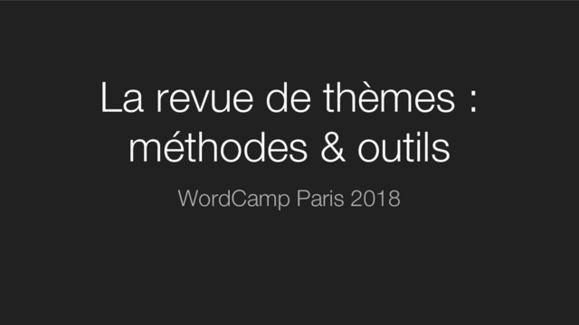 Que vous soyez un ou une futur·e auteur·e de thème WordPress ou un développeur·se confirmé·e de thèmes sur-mesure, l'objectif est de vous présenter la méthodologie de mise en place d’une installation WordPress de « reviewer », le jeu de données destiné aux tests unitaires et toutes les extensions utiles à cette prestation : Theme Check, Debug Bar, Log Deprecated Notices, Theme Sniffer, Monster Widget, Pig Latin… et Tide qui va maintenant être implémenté de façon générale sur WordPress.org.