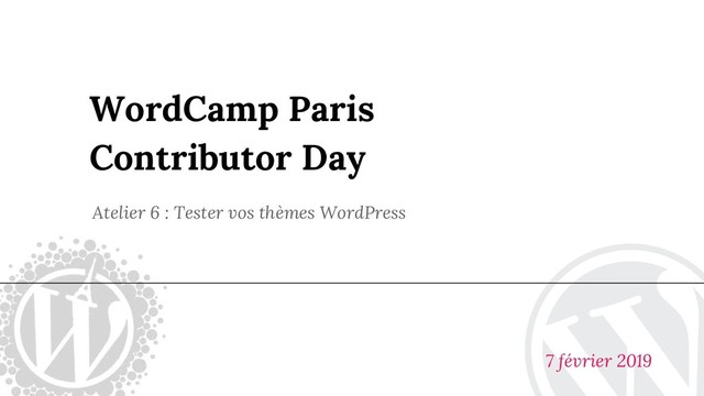 Lors de l’atelier 6 de préparation du Contributor Day du WordCamp Paris 2019, j'ai proposé un accompagnement dans la mise en œuvre de cette évaluation en l'appliquant à tout thème WordPress. L'objectif était de disposer ainsi d'une bonne idée de sa qualité et d'être capable de reproduire cette analyse sur tous type de thème (premiums, gratuits ou faits maison).