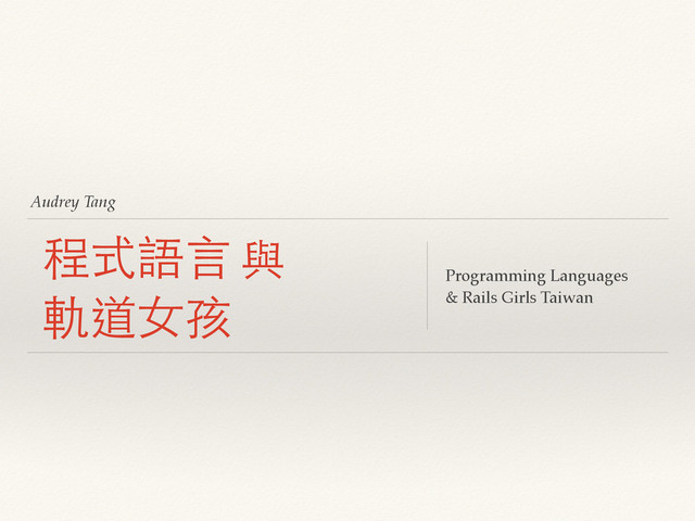 逐字稿中文版: http://audrey.nu/-/2014/04/28/programming-languages-and-rails-girls