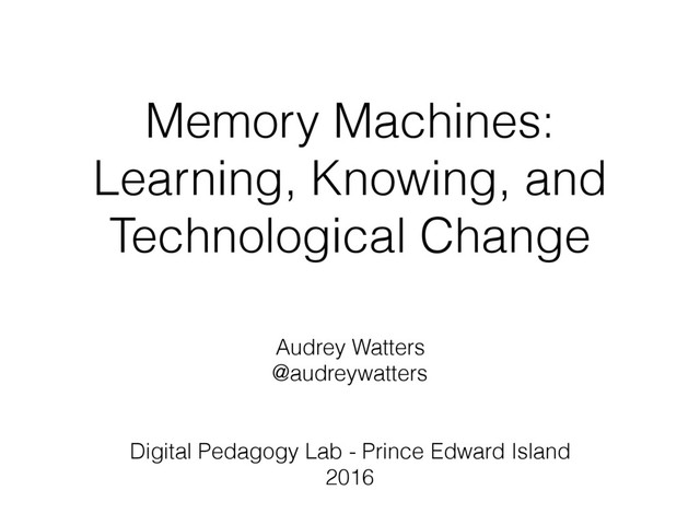 Memory Machines: Learning, Knowing, and Technological Change Audrey Watters @audreywatters