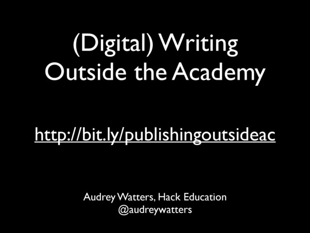(Digital) Writing Outside the Academy Audrey Watters, Hack Education @audreywatters
