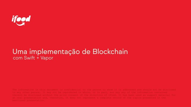 Talk do 27o. encontro Cocoatalks do Cocoaheads de Campinas sobre uma implementação simples e com fins educacionais de Blockchain. Ideal para devs das plataformas da Apple por ser 100% em swift utilizando o web framework Vapor.
