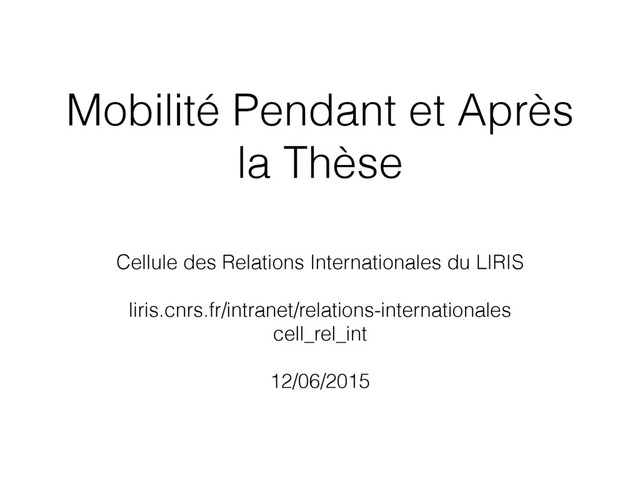 du LIRIS ! liris.cnrs.fr/intranet/relations-internationales cell_rel_int ! 12/06/2015