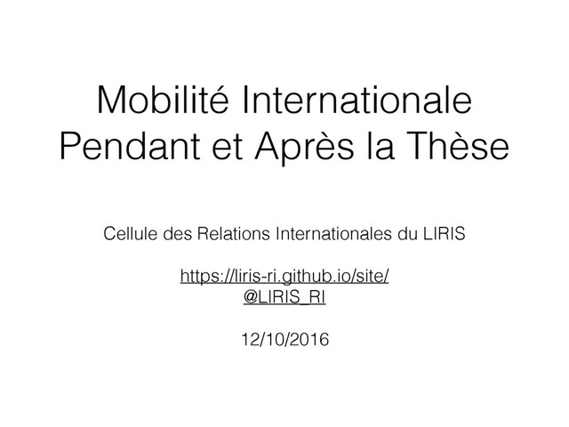 perform as an independent researcher » • Publish with other people than your advisor • Supervise students • Participate in project proposal writing, project management, etc. • Learn new research methodologies, visions • Sometimes an opportunity to discover a new research field…thematic mobility
