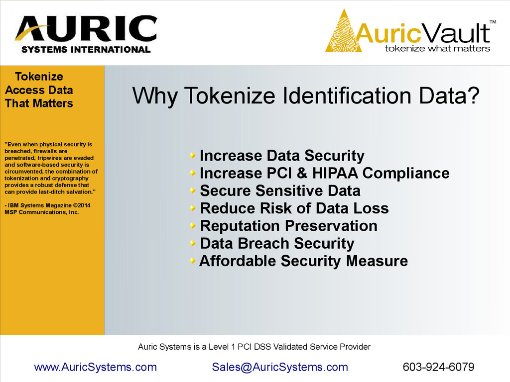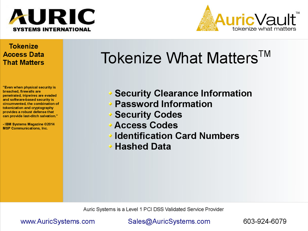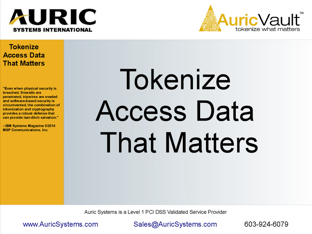 In this installment from the Auric Systems International presentation series "Tokenize What Matters" comes "Tokenize Access Data That Matters" and in a small 5 deck presentation we describe what Access data to tokenize and why.